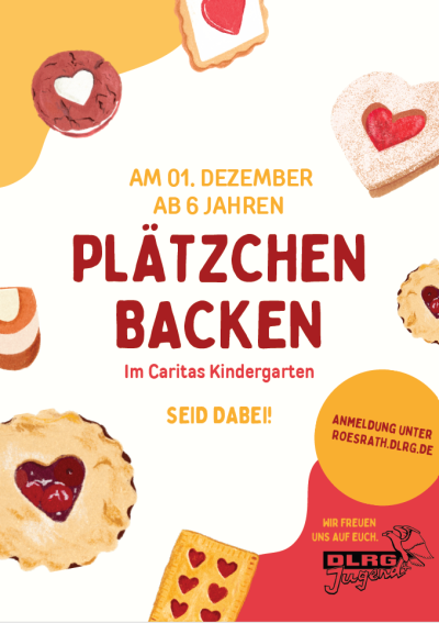 mal wieder ist ein Jahr fast vorbei und die Adventszeit steht demnächst vor der Tür … Das Einzige, was noch fehlt sind die Weihnachtsplätzchen?- Kein Problem, denn zum Glück findet dieses Jahr wieder, das traditionelle Plätzchen backen der DLRG Jugend in Rösrath statt.